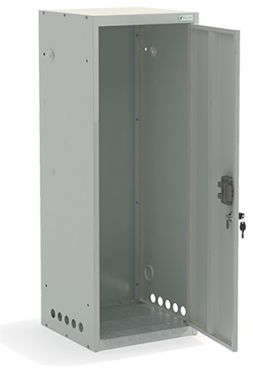 Шкафы серии ШГР изготавливаются из высококачественной конструкционной холоднокатаной стали. Металлический шкаф состоит из сборно-разборного корпуса и одной распашной двери. Корпус состоит из основания, усиленного оцинкованным настилом, крыши, двух боковых стенок и одной задней стенки. Сборка корпуса осуществляется на винтах и саморезах. Дополнительную жесткость основанию придает приварное ребро жесткости.